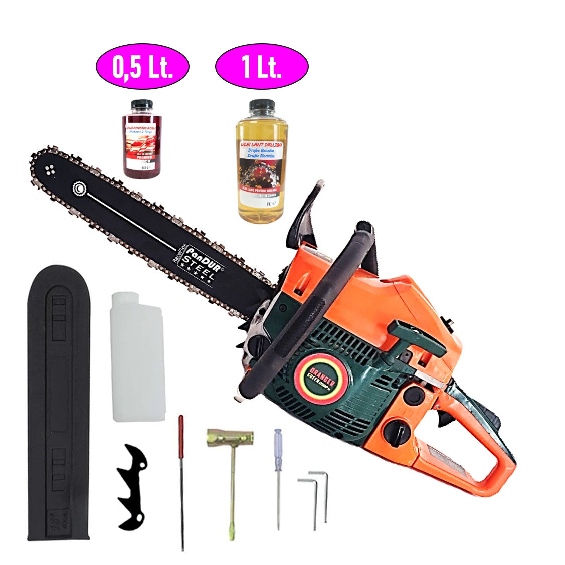 SEZONUL-OFERTELOR *HOT-SALE* PACHET Drujba DUBAI, 4.4kW, 52CC, lama 40cm PANDUR, + ULEI LANT, + ULEI AMESTEC