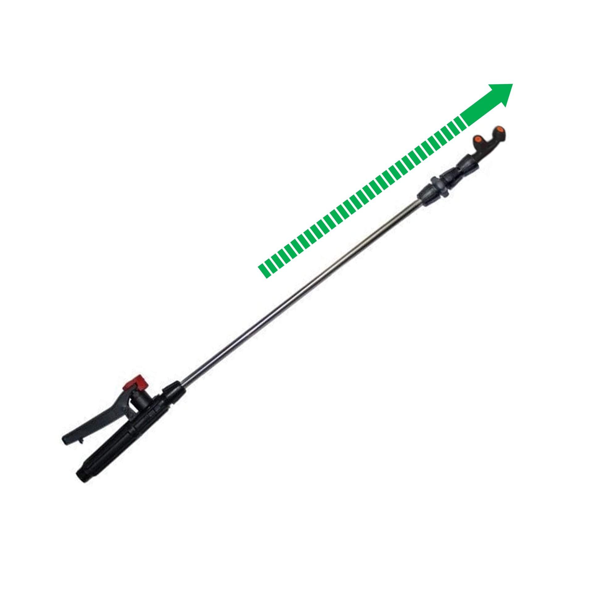 Tija se poate extinde de la 1,4m pana la 3m asigurand o inaltime de lucru apreciabila cu pulverizare pana la varful pomilor inalti sau pe suprafete mari la nivelul solului asigurand o productivitate sporita.
