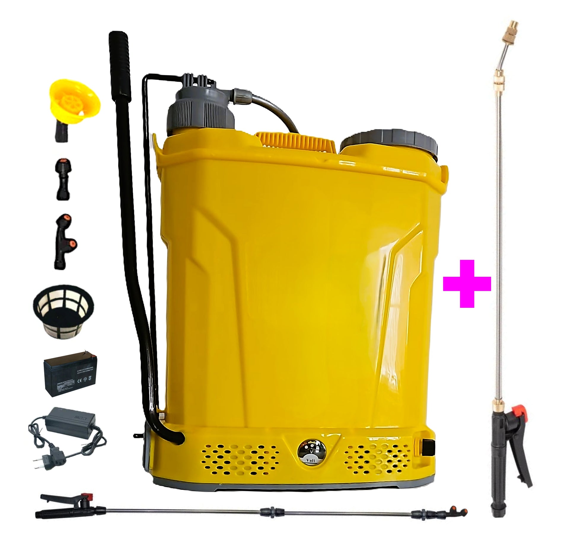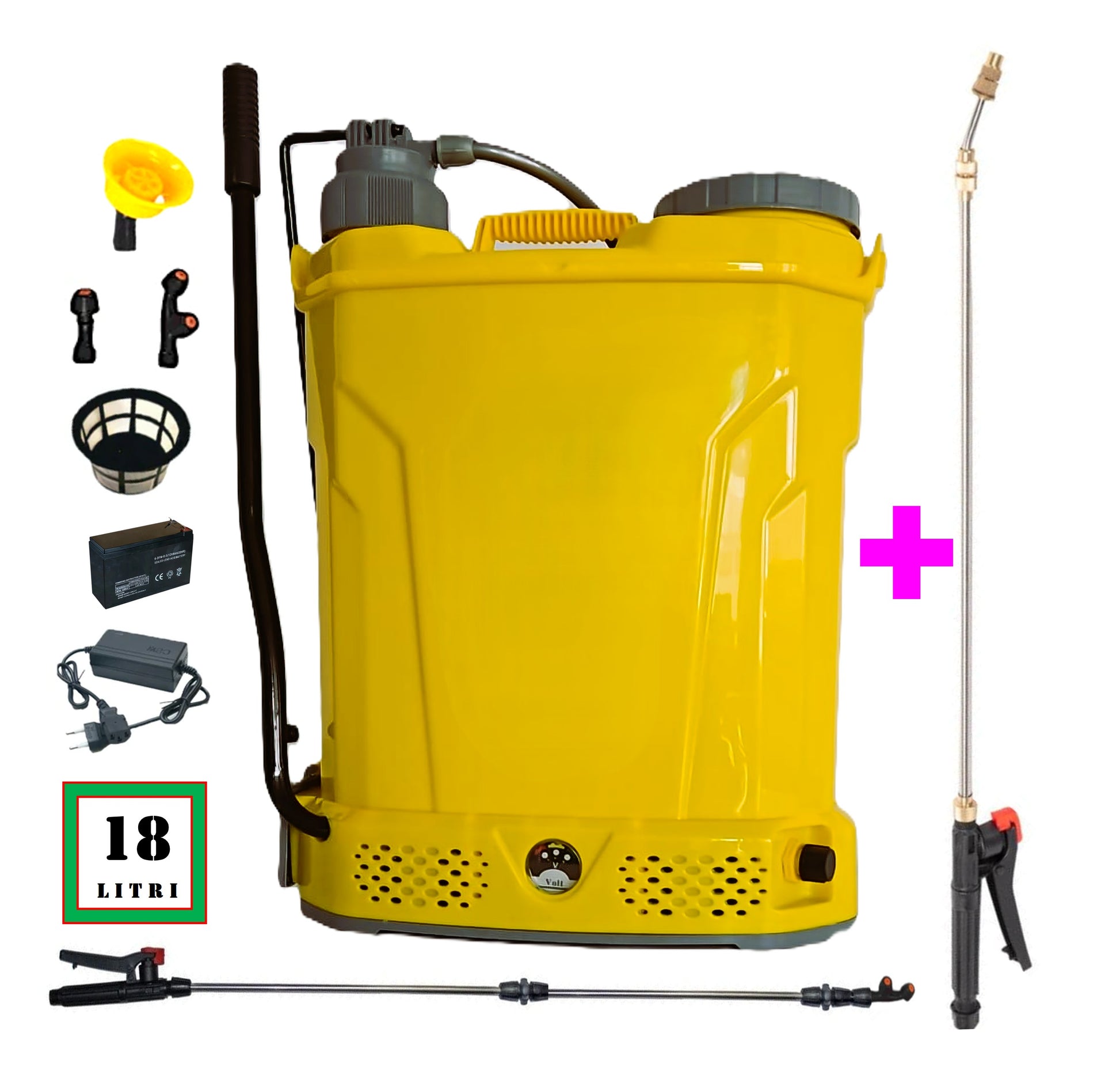 *BuzZ* SET VERMOREL 18L POMPINA Electric cu Acumulator si Manual, GALBEN, tija extensibila 1m, + TIJA INOX Extensibila 3 Metri