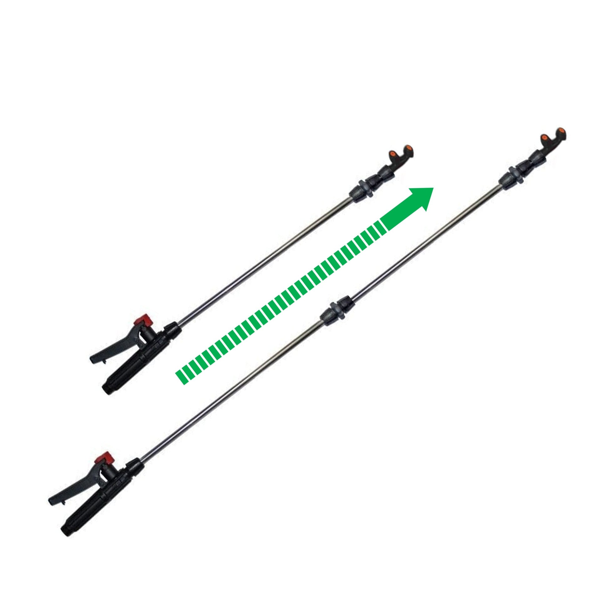 Tija se poate extinde de la 1,4m pana la 3m asigurand o inaltime de lucru apreciabila cu pulverizare pana la varful pomilor inalti sau pe suprafete mari la nivelul solului asigurand o productivitate sporita.