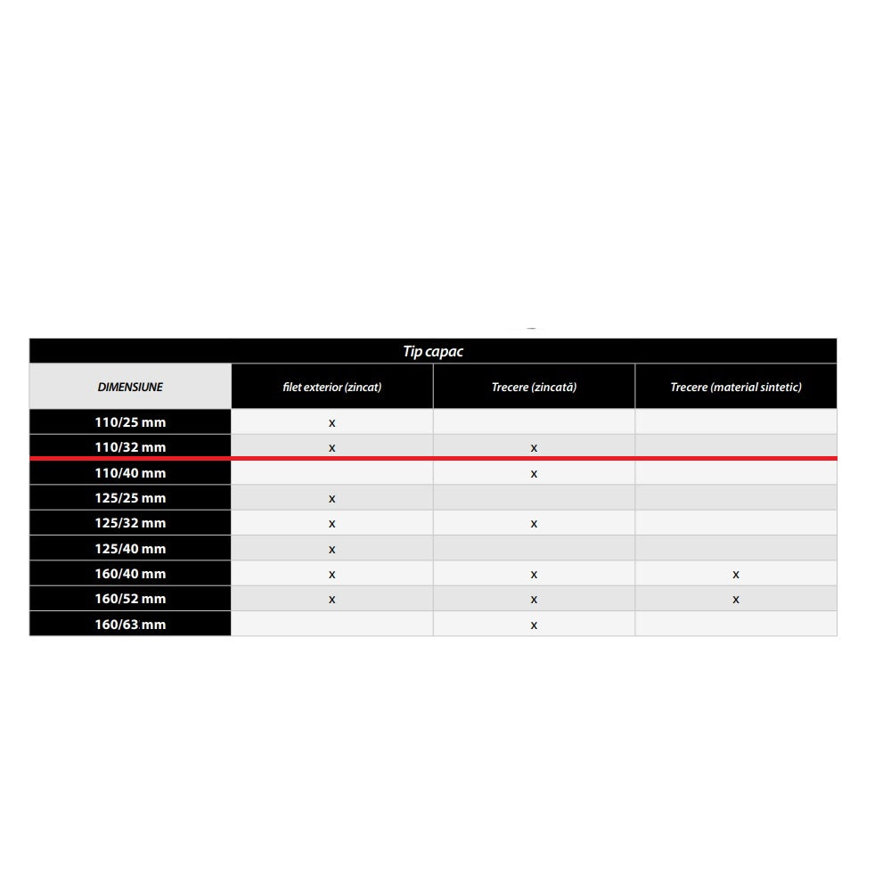 - Diametru exterior : 110mm