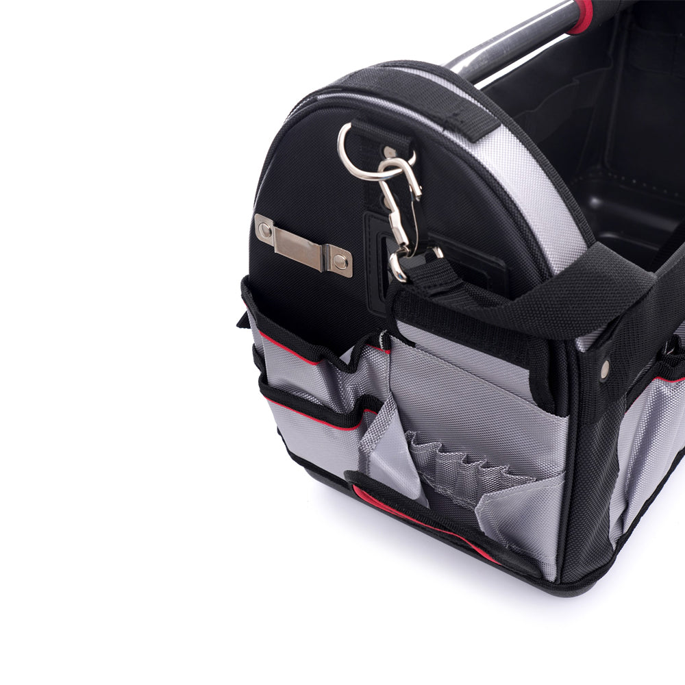 Geanta de scule de la Kraft & Dele este un organizator de scule ideal pentru toti montatorii (electricieni, instalatori, gresie, etc.) Fundul rigid acoperit cu material compozit asigura durabilitate, iar multe buzunare comanda si acces rapid la sculele necesare.