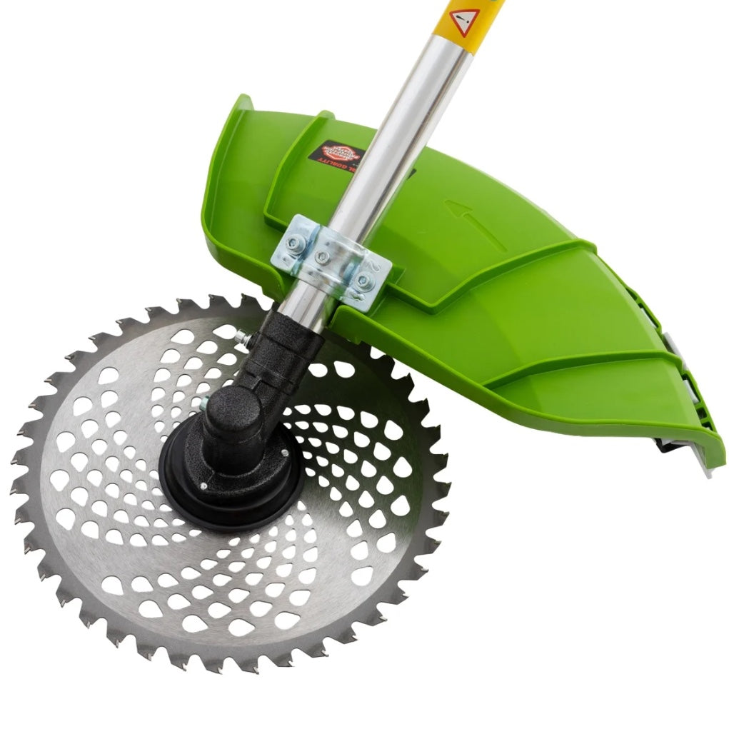 - sisteme de taiere: 1 x tambur cu fir, 1 disc metalic stea, 1 x disc cu dinti cu pastile vidia, 1 x disc cu 8 Lame