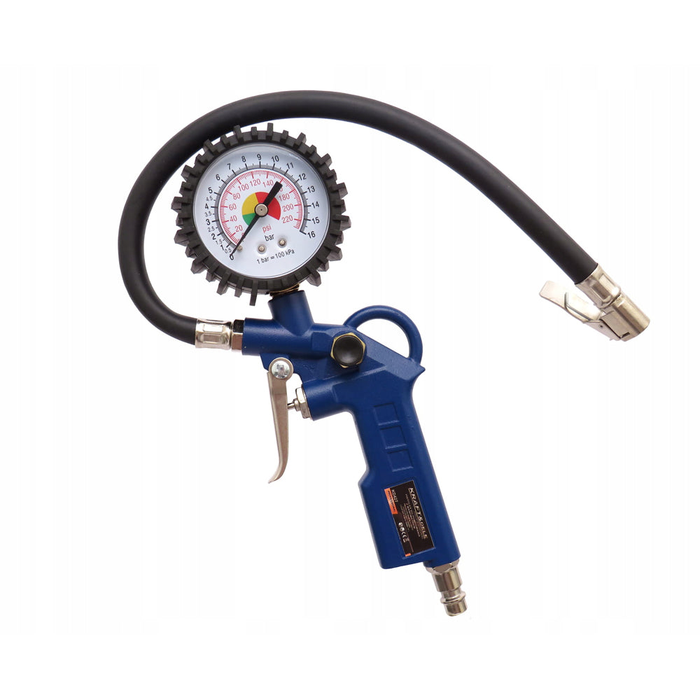 - Pistol de umflare echipat cu un manometru precis care vă permite să controlați presiunea aerului din produsul umflat