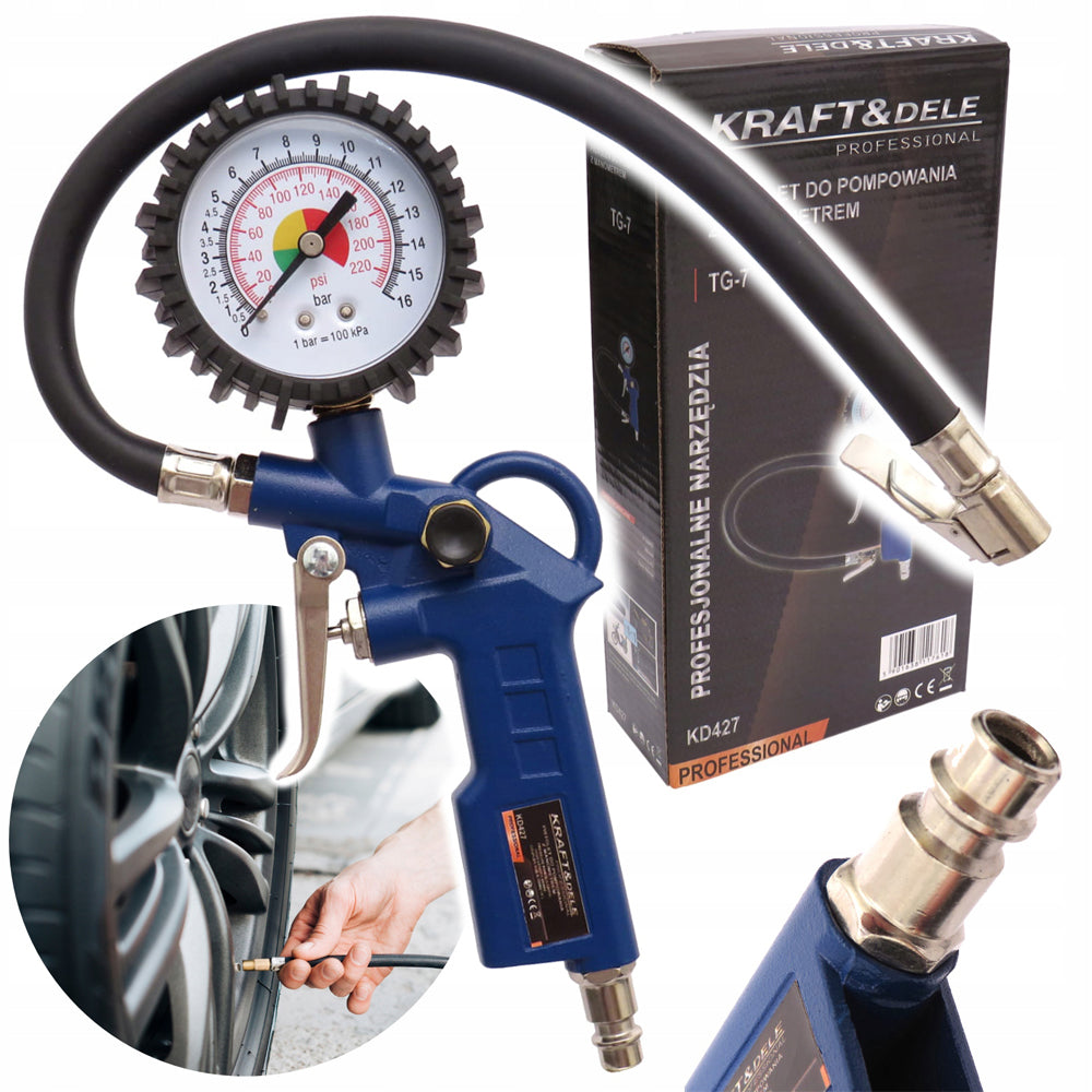 Pistol cu manometru pentru umflarea anvelopelor Kraft&Dele KD427, conexiune 1/4"