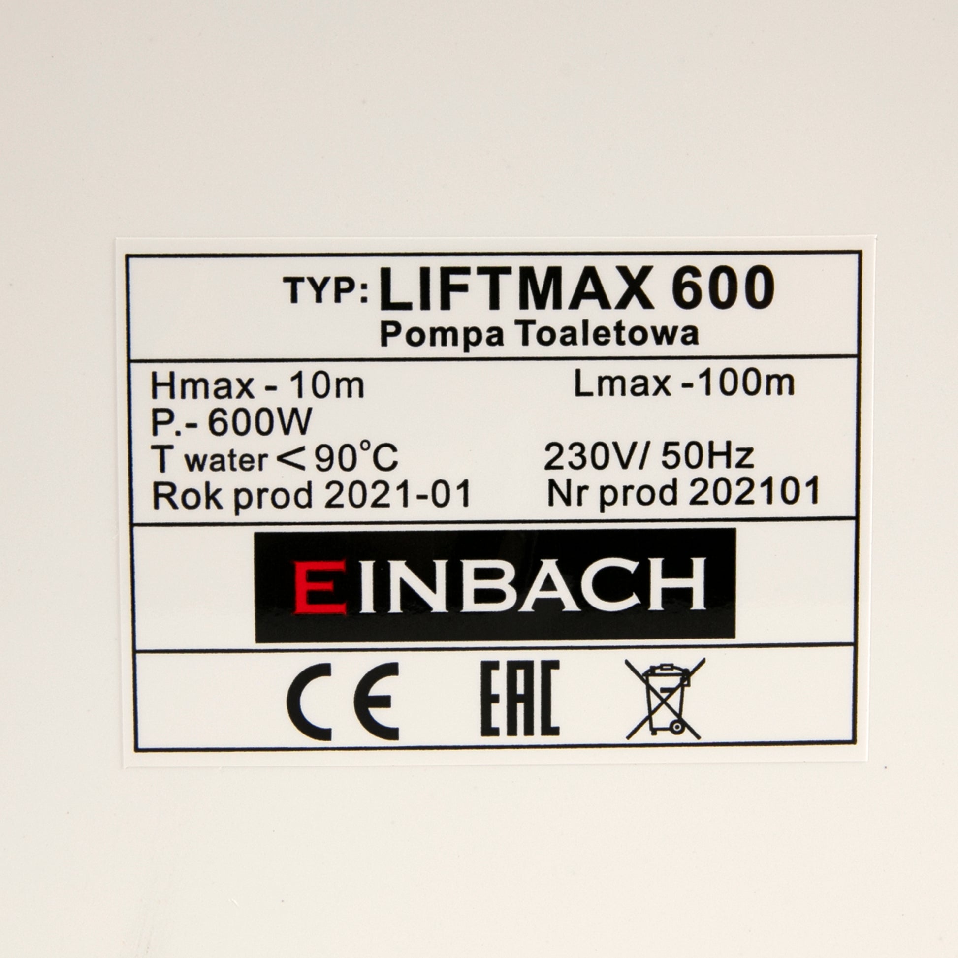 Pompa cu tocator WC Einbach Liftmax 600, 600W, 240 l/min