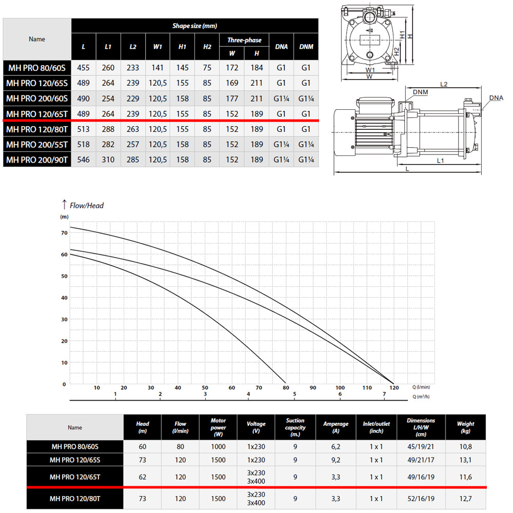 MH PRO sunt echipate cu un sistem de crestere a capacitatii de aspiratie datorita utilizarii unui tub Venturi. Sunt concepute pentru pomparea apei curate, rece din prize proprii si pentru cresterea presiunii. pompele sunt folosite atat in gospodarie (alimentare cu apa, irigatie, apa pluviala) cat si in industrie (spalatorii auto, sisteme de aer conditionat, refrigerare).