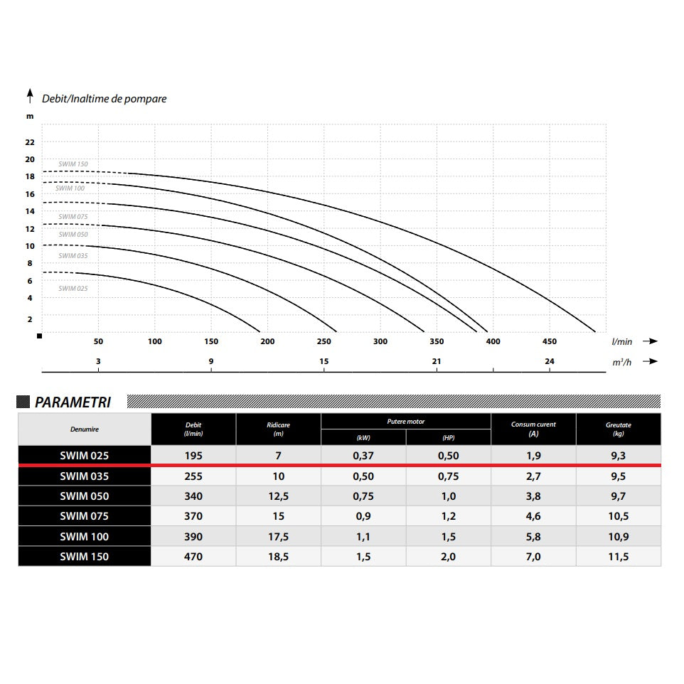Pompa piscina POMPINA-Poland SWIM-025, 0.37 kW, 11700l/ora, refulare 7 m