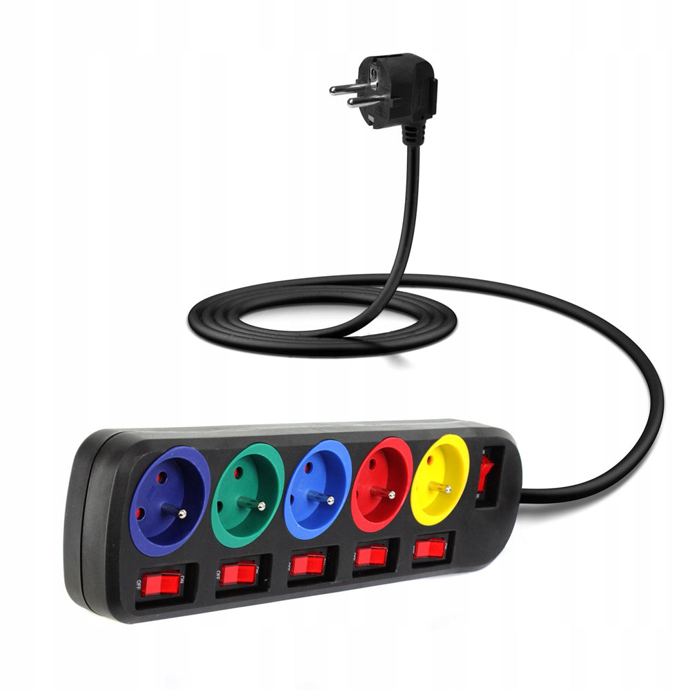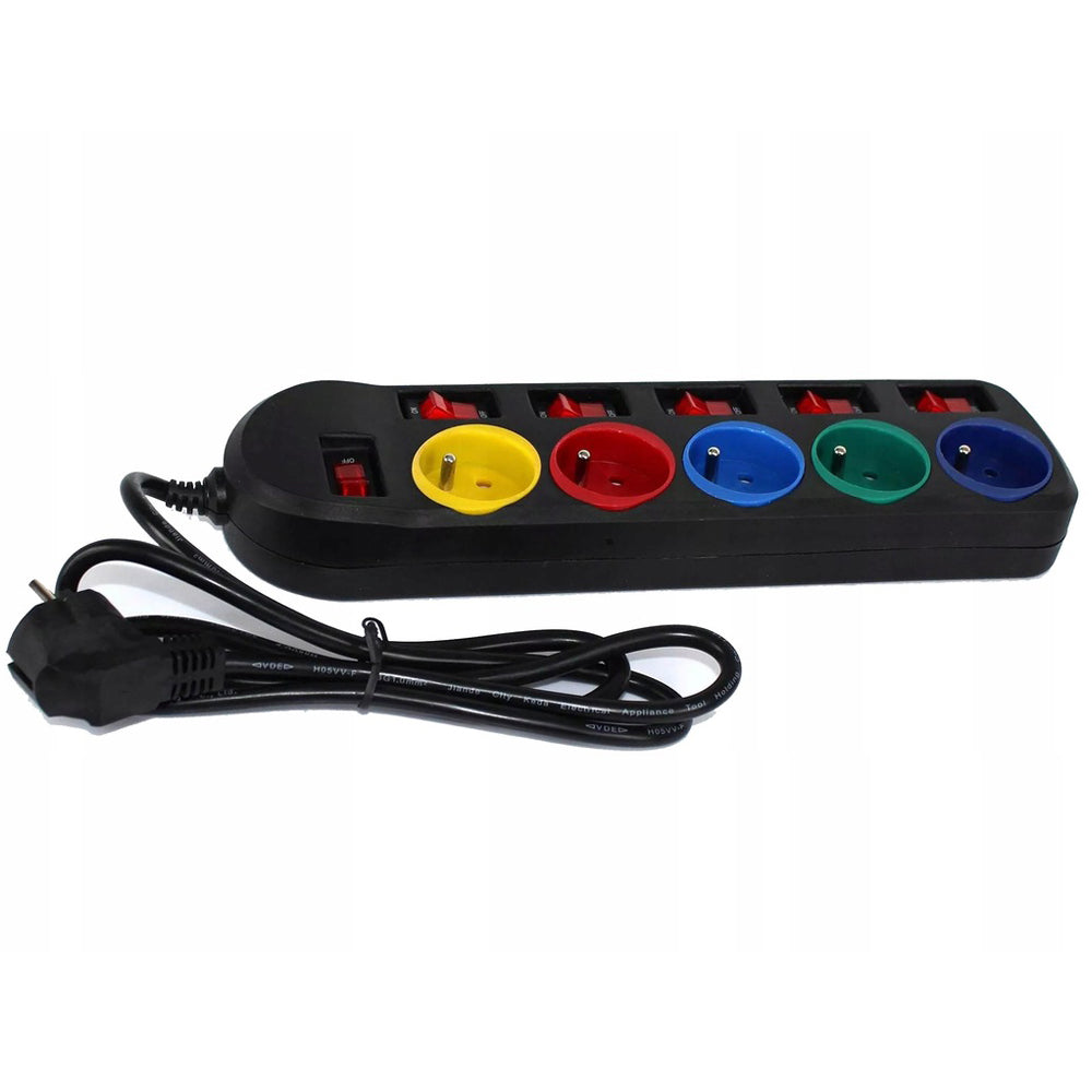 Cablu prelungitor cu banda cu 5 prize cu intrerupatoare separate pentru fiecare priza, impamantare.