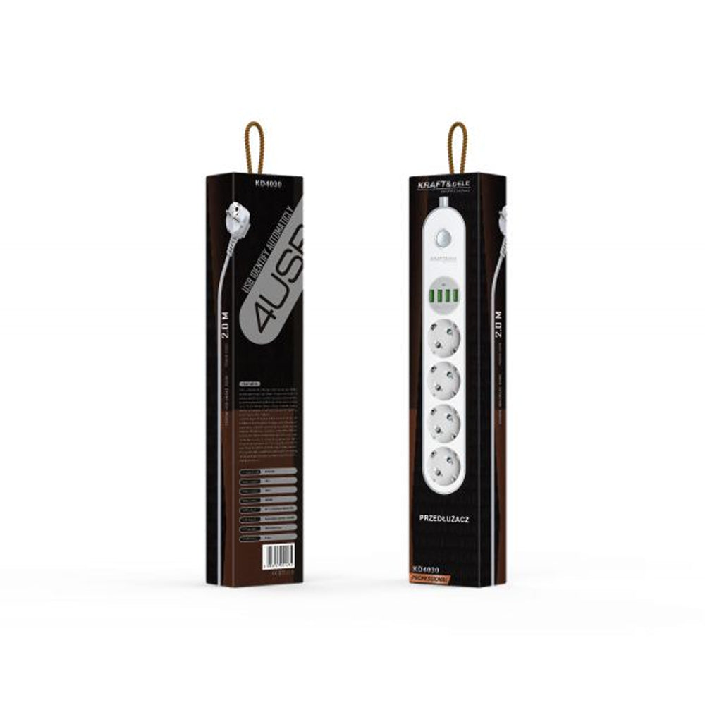 Prelungitor electric cu intrerupator KRAFTSON % Import Polonia % 4030 4 prize, 4 mufe USB, 2m