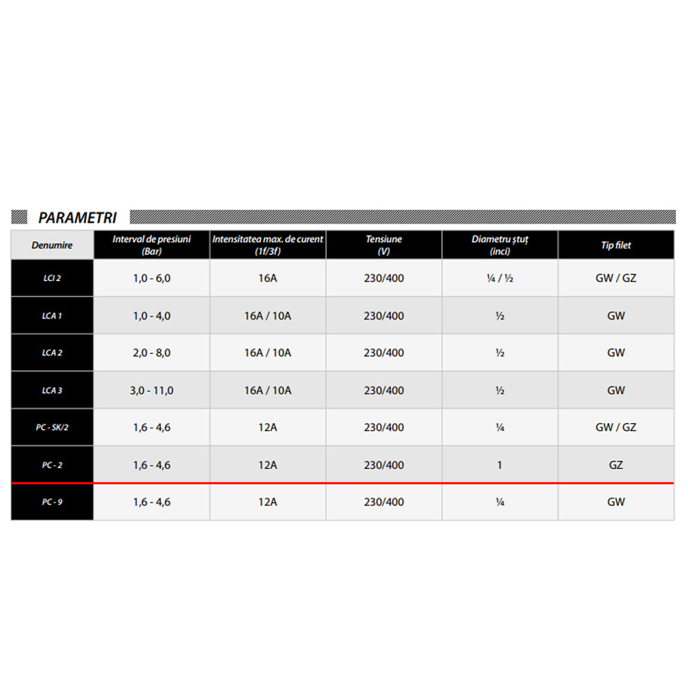 Intrerupatorul PC-2 a fost echipat suplimentar cu un manometru, iar structura sa se bazeaza pe constructia unei iesiri de refulare pe cinci cai, astfel incat sa poata fi utilizat ca accesoriu complet al setului de hidrofor. PC-2 are stuturi de diametru 1”.