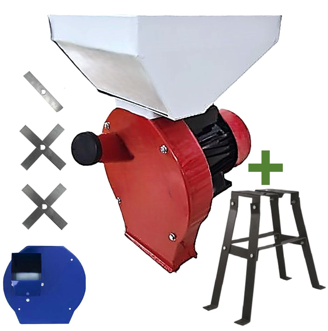 Moara cereale si stiuleti cu motor si ciocanele pe ax pentru uruiala si malai + Butuc cutite tocat lucerna/fan si Capac Adaptor tocat lucerna/fan (3 in 1) || Model NOU - o selectie WolfSTAR de la EuroUnelte) || + Suport Metalic cu picioare