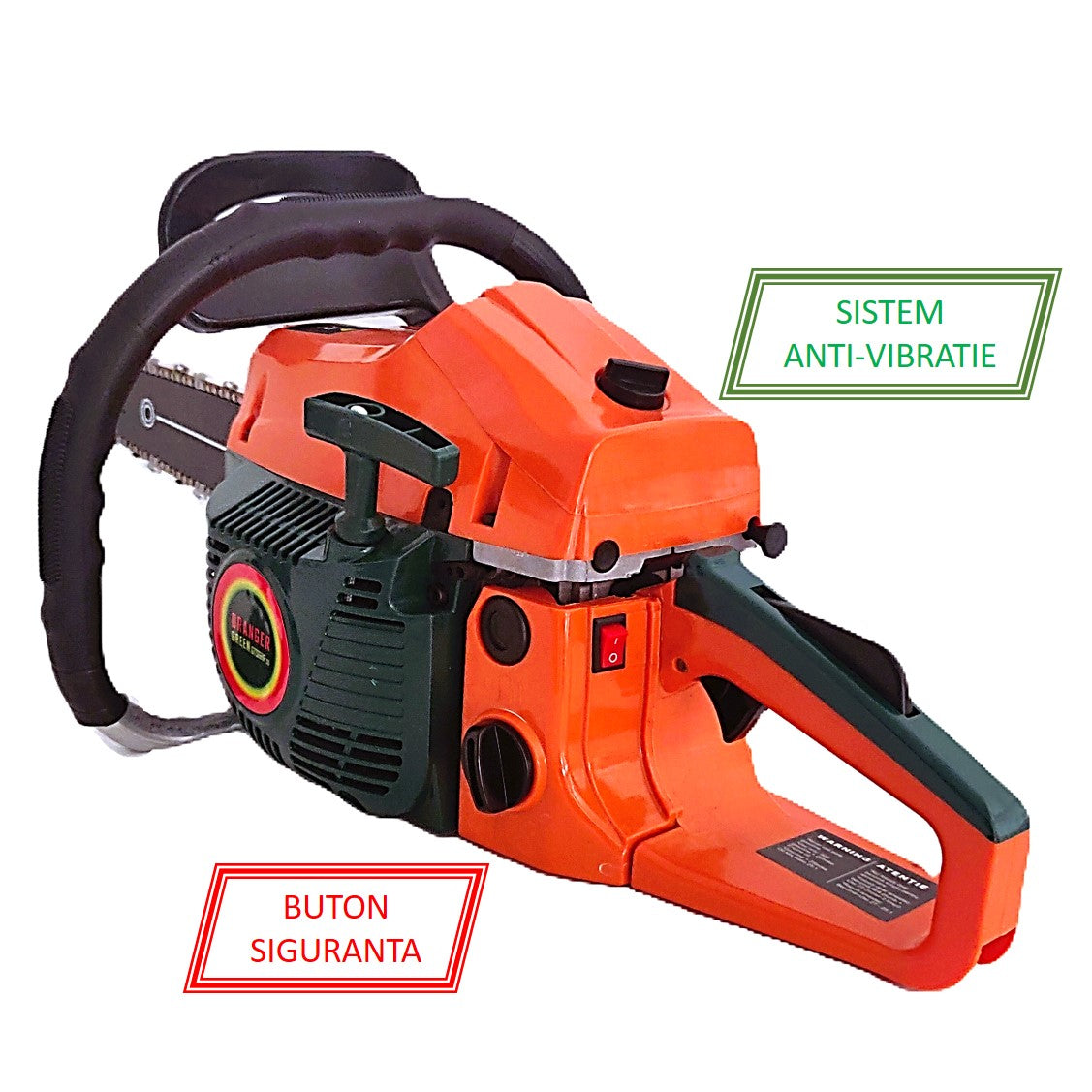 Drujba functioneaza cu amestec benzina+ulei amestec 2T (se va folosi la preparare amestec benzina fara plumb).
