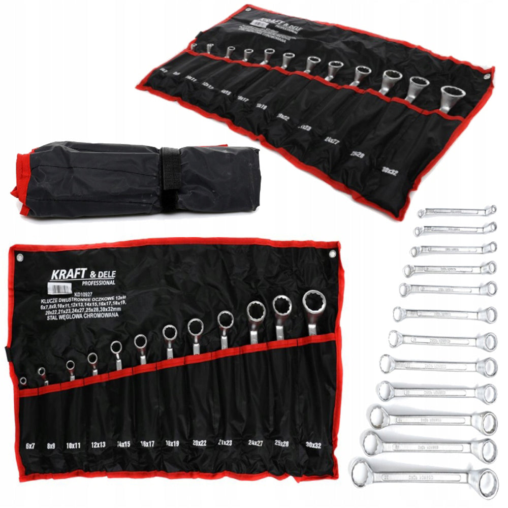 Set 12 chei inelare cu cot si cap dublu, KRAFT, dimensiuni 6–32 mm