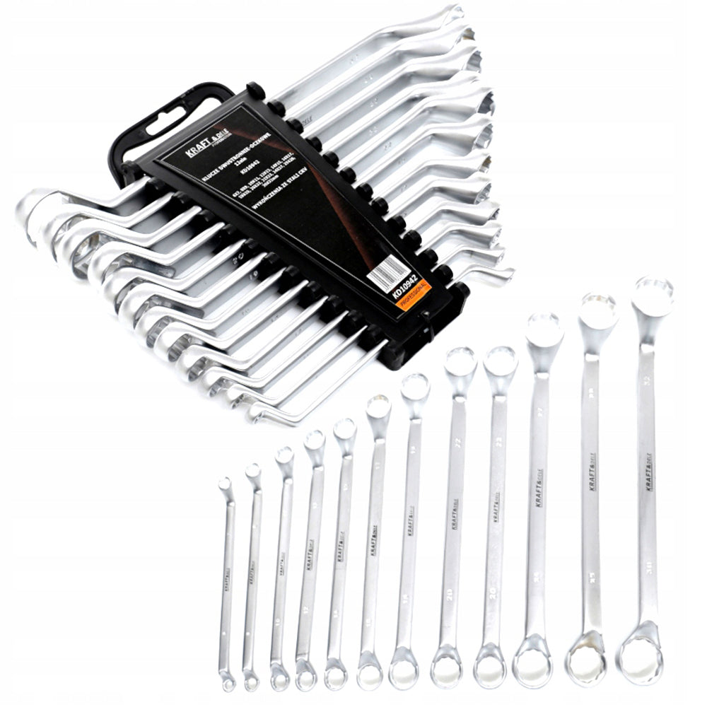 Obiectul ofertei este un set de 12 chei inelare Kraft & Dele cu dimensiunile 6-32mm . Setul include cele mai utilizate chei inelare, care sunt ideale pentru lucrul in atelierul, casa sau garajul fiecarui pasionat de bricolaj. Setul este realizat din otel crom vanadiu . Cheile vor fi asezate intr-un pachet practic pentru depozitare usoara.