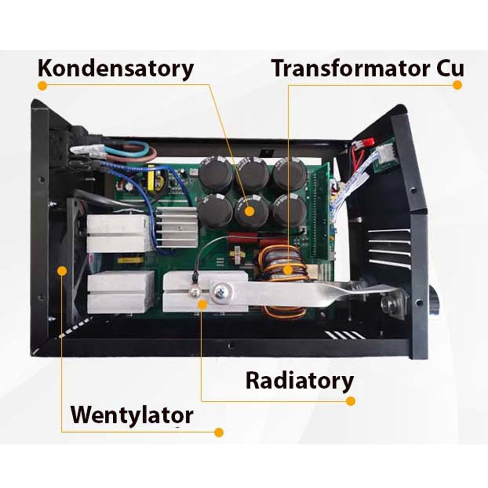 Aparatul de sudura se distinge prin cel mai recent sistem de instalare a condensatoarelor marite in afara zonei radiatorului, astfel incat sa maximizeze eficienta masinii de sudura, in plus, condensatoarele in sine sunt mai puternice decat in cazul masinilor de sudura competitive, ceea ce va permite in cele din urma sa va oferiti un dispozitiv cu putere mare.