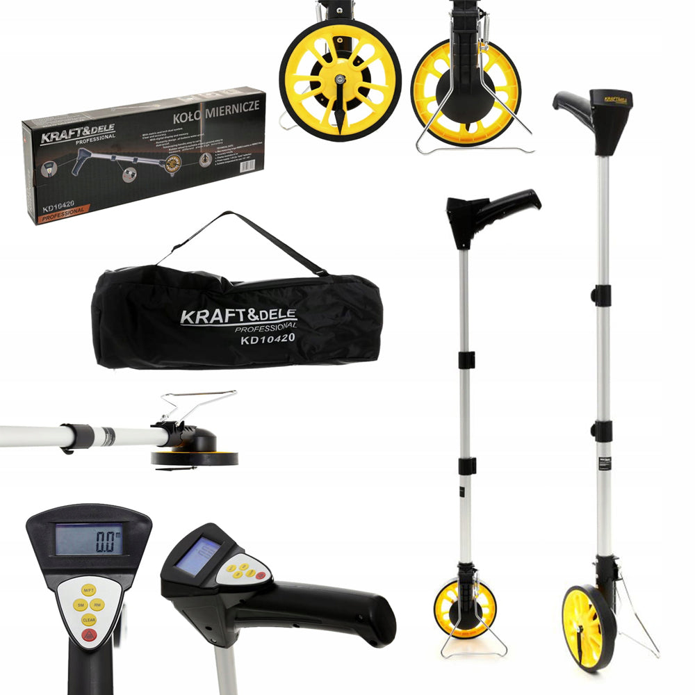 Roata de masurare echipata cu sistem electronic de masurare a distantei. Masurarea se face prin rularea rotii pe o suprafata plana, care porneste contorul electronic. Rezultatul masurarii este afisat sub forma de numere pe afisajul LCD. Piciorul metalic va permite sa plasati dispozitivul in pozitie verticala. Este un aparat care este utilizat pe scara larga in masuratori pe teren, pe drumuri, in constructii, masuratori de locuinte si gradina, suprafete de drumuri publice, terenuri de sport, instalarea stalpilor de curent, la plantarea copacilor etc.