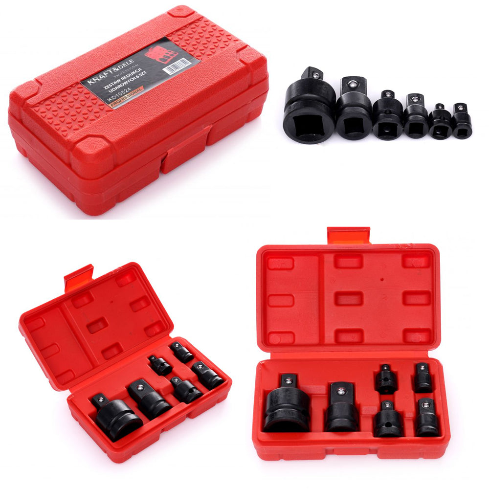 Un set de reductoare si adaptoare specializate concepute pentru a functiona cu o cheie de impact. Reductoarele se caracterizeaza prin durabilitate si fiabilitate. Elementele sunt realizate din otel pentru scule CR-MO, ceea ce le garanteaza durabilitatea si durata de viata lunga. Sunt perfecte pentru lucrul sub sarcina atat intr-un atelier la domiciliu, cat si intr-o fabrica profesionala. In plus, au o minge de blocare.