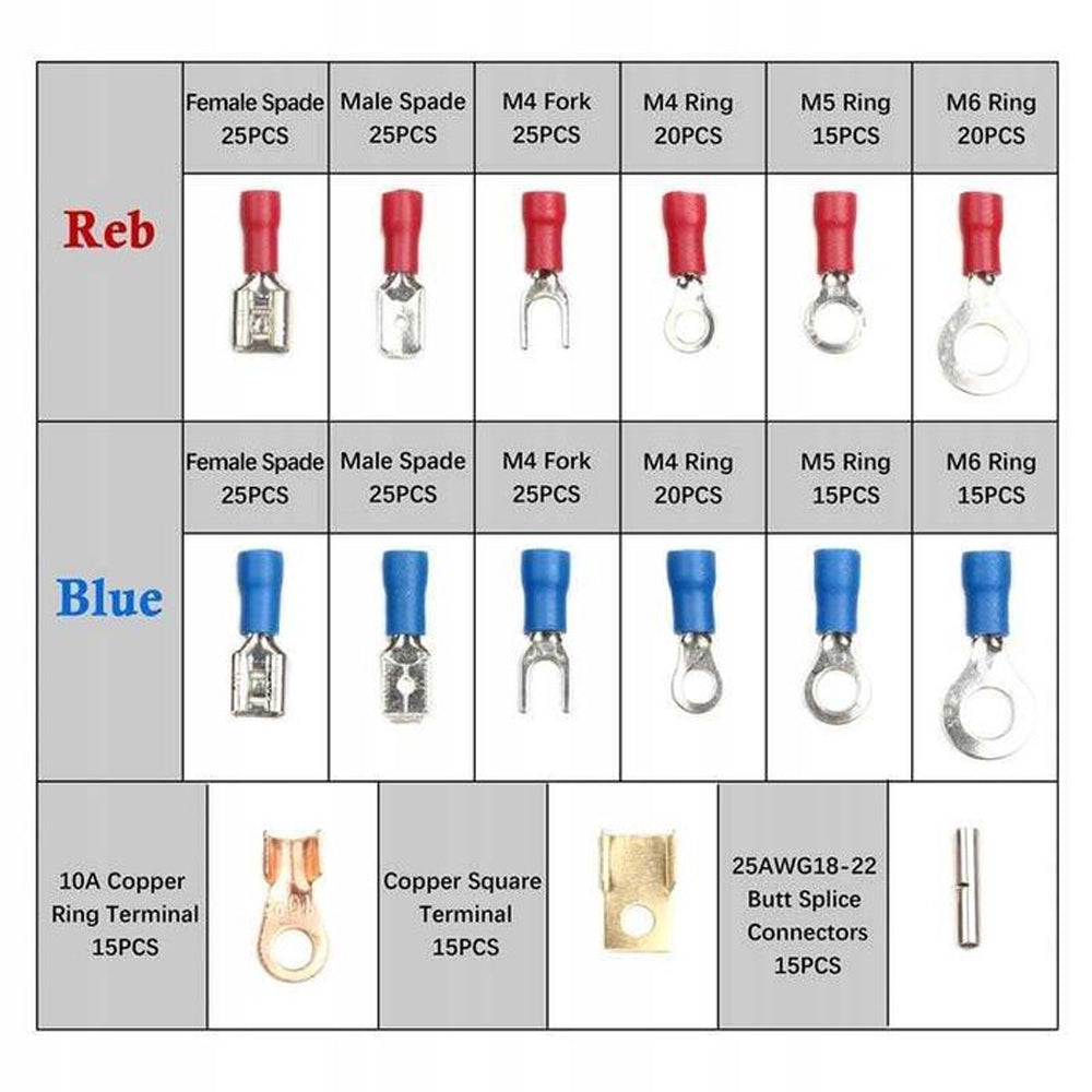 Conectori de sertizare izolati Kraft&Dele KD10488, livrati intr-un pachet convenabil, solid, care faciliteaza separarea in tipuri individuale de conectori.