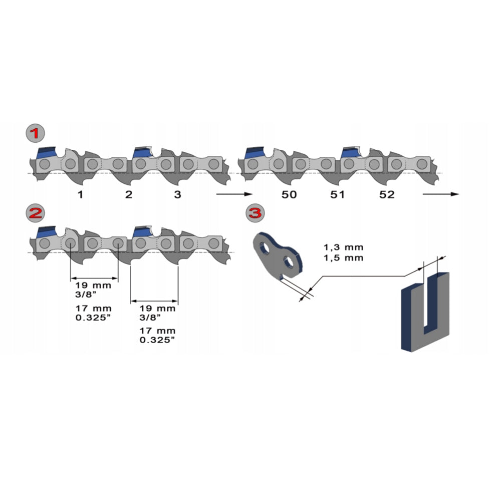 - Pas lant: 3/8 (19,5 mm)