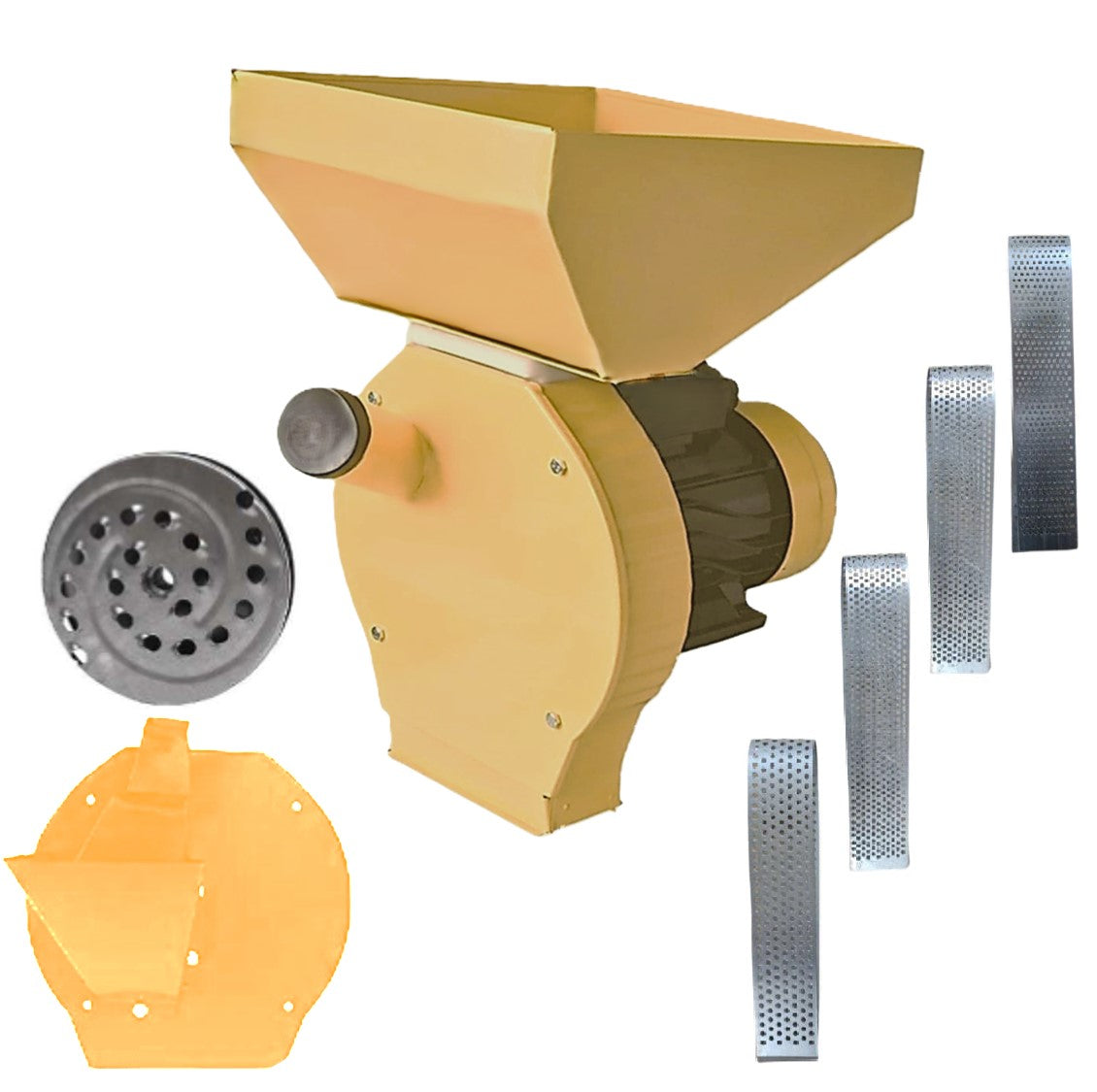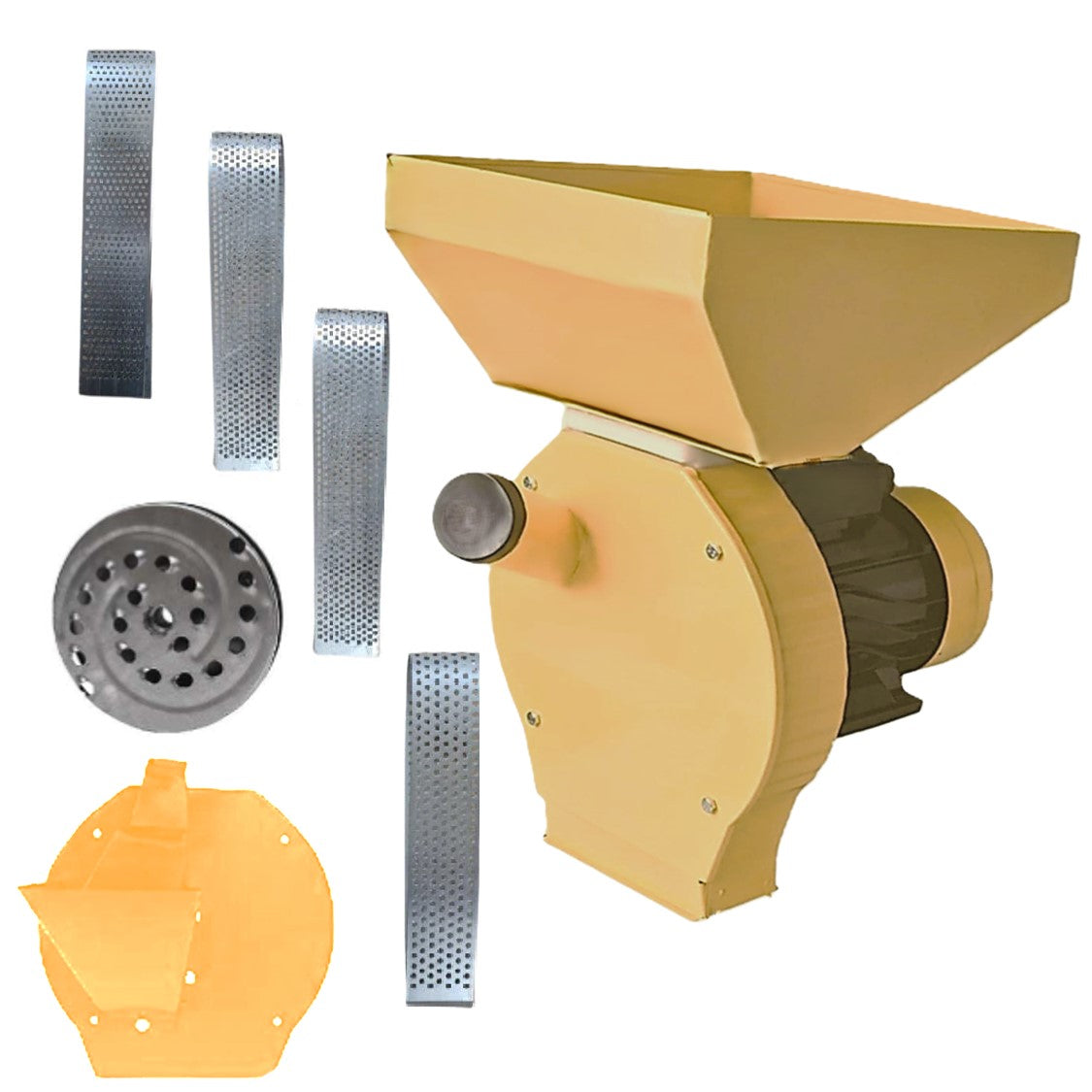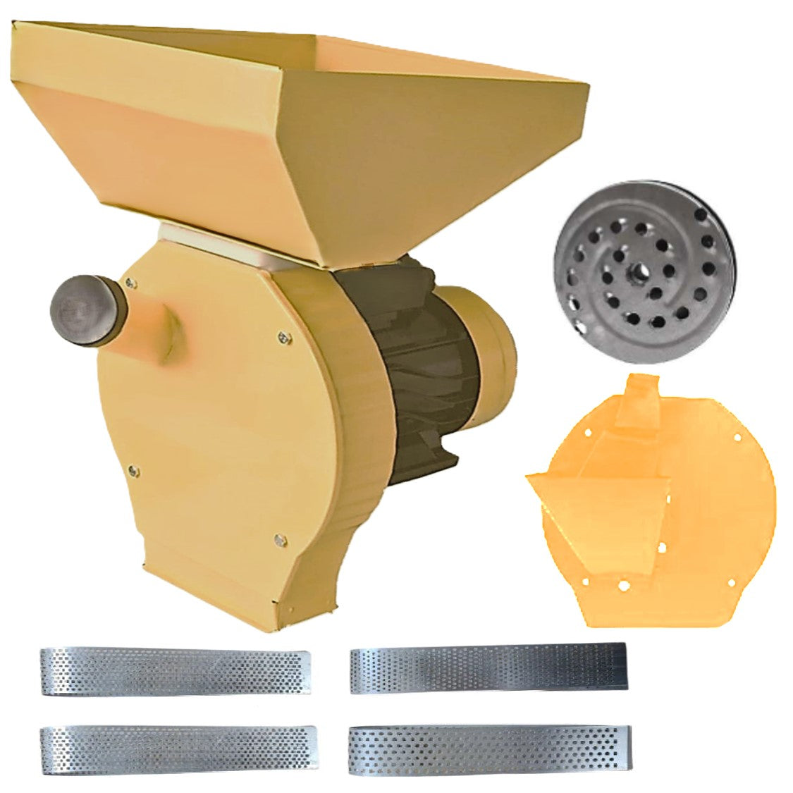 Moara cereale electrica cu 20 de ciocanele pentru uruiala, ( 2 in 1 ) - Model NOU de culoare Yellow Rotor (E-FERMIERUL este o selectie de la EuroUnelte in cadrul proiectului e-Fermierul) + Razatoare Legume/fructe si Capac Adaptor tocat legume/fructe (3 in 1)