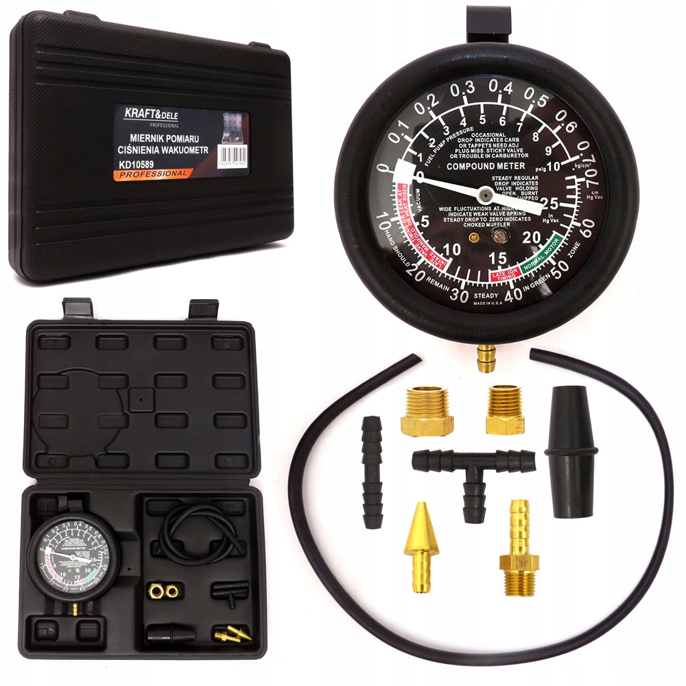 Instrumentul universal pentru masurarea presiunii si vidului de la modelul KRAFTSON (Import Polonia) 10589 ideal pentru diagnosticarea motoarelor de autoturisme si motociclete. Echipat cu fitinguri si extensii care sunt utile in montarea contorului.