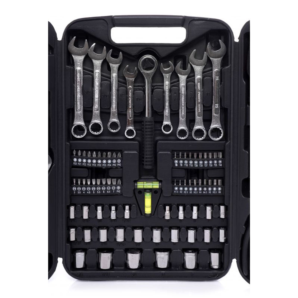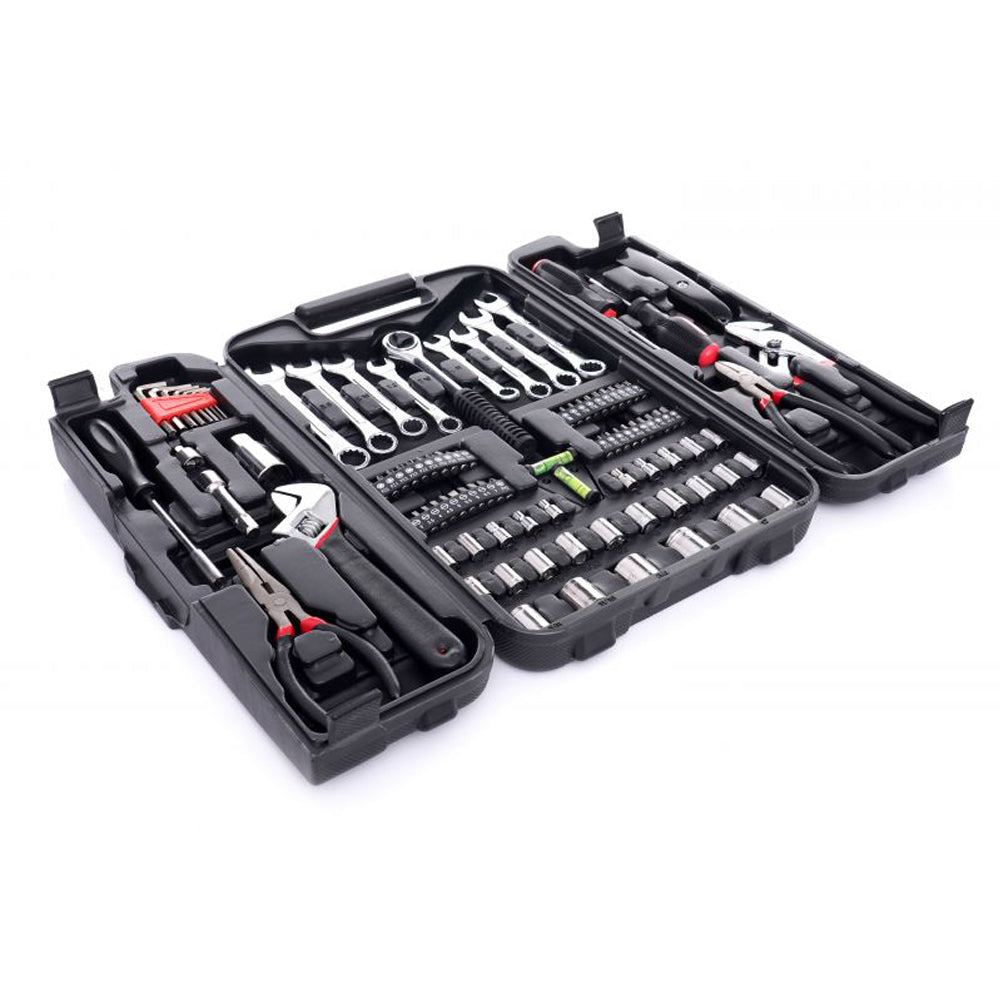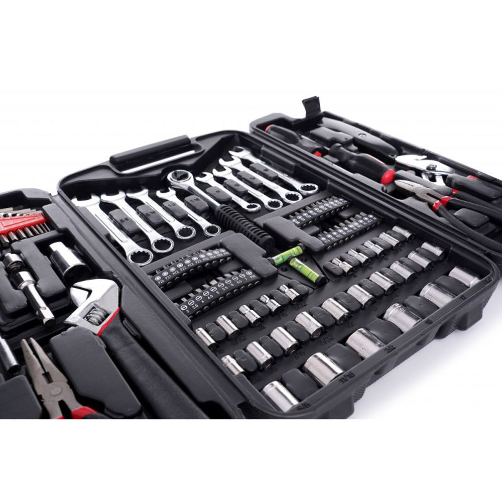 Fiabilitate, fiabilitate si ergonomie. Un set cu mai multe casete detasabile include ambele: chei plate, chei tubulare, un clichet, un set de clesti, cleme, chei hexagonale, un cutit, precum si surubelnite si biti.