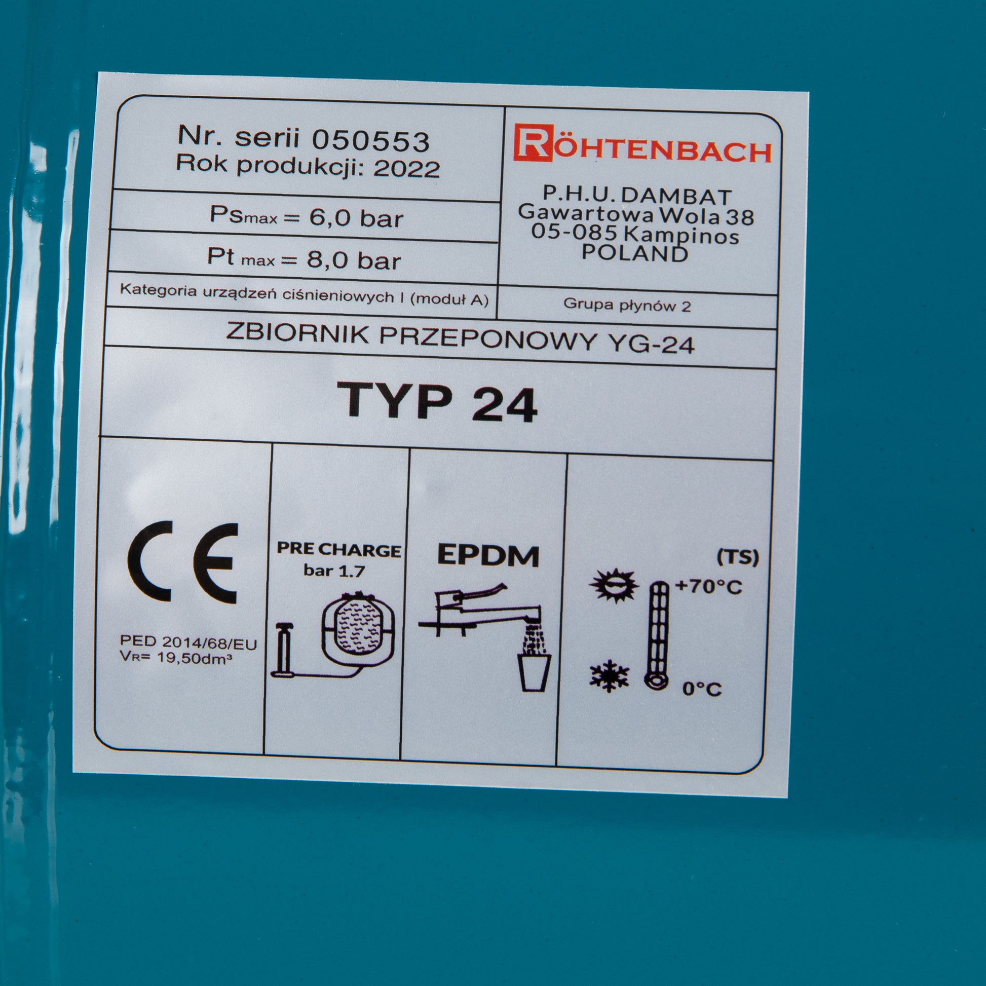 Vas expansiune Rohtenbach, 24 litri, orizontal cu diafragma, pentru apa calda si rece