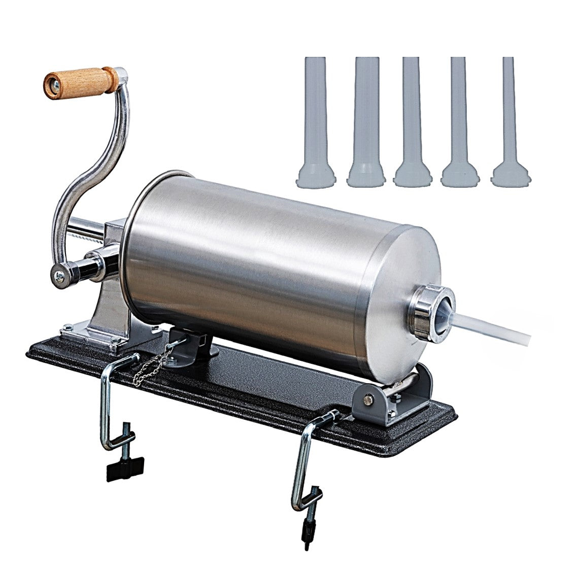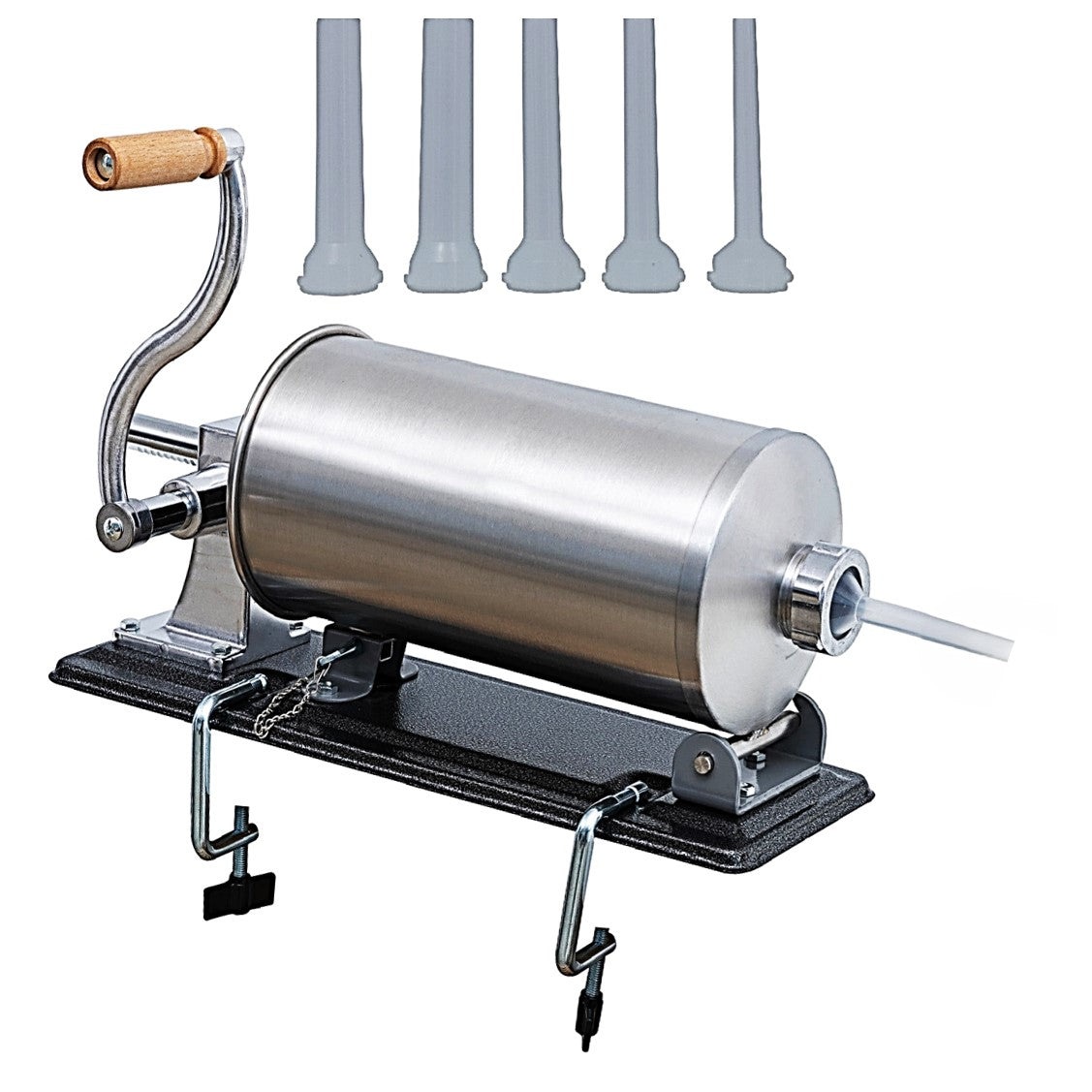 Masina de umplut carnati si mezeluri, 4kg, cu pozitionare pe orizontala si actionare manuala, + 5 Pâlnii incluse.